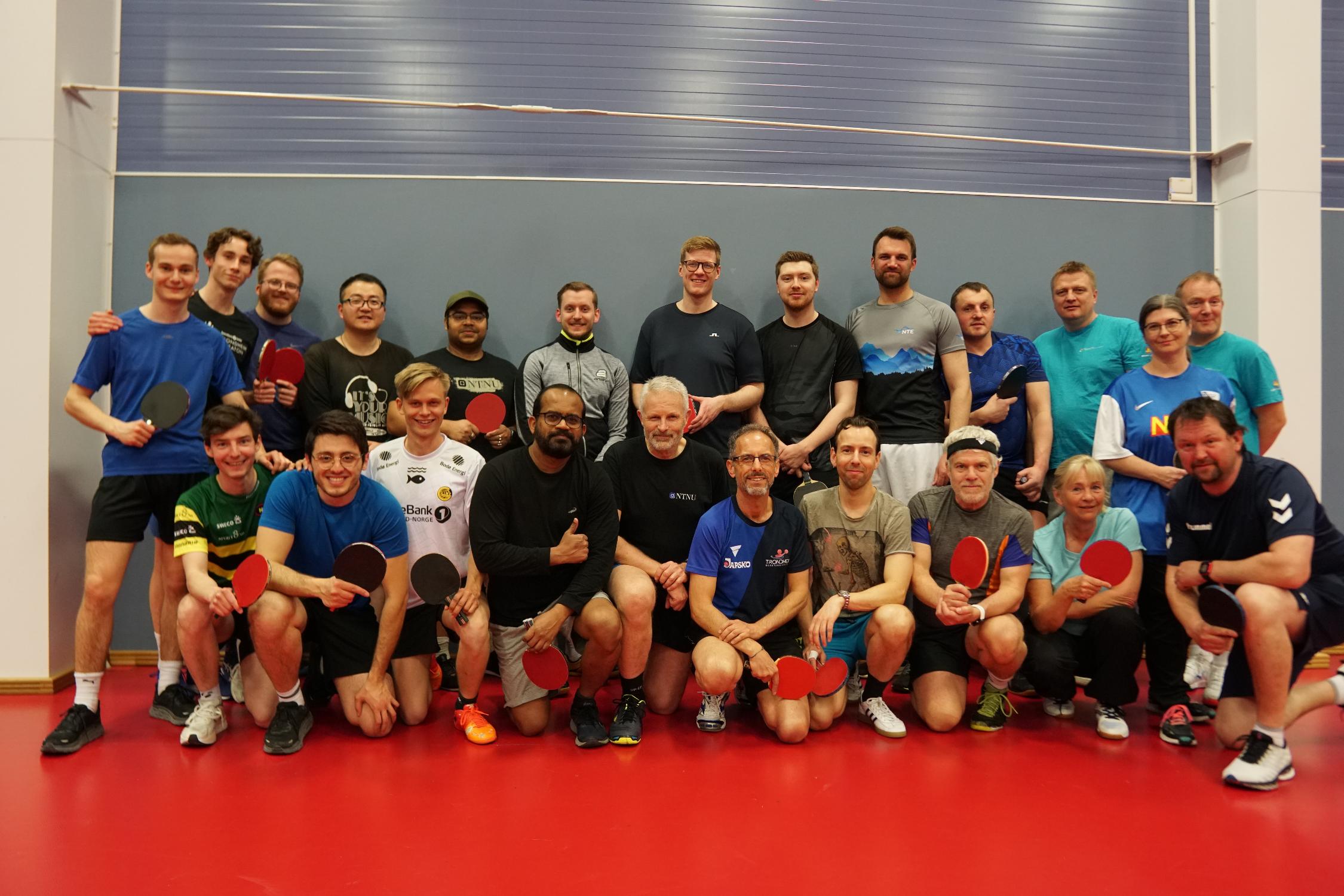 Join us! We have practice on Fridays. We also have 4 teams in the company sports serie: bedriftsbordtennis